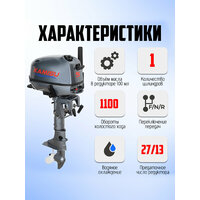 | Особенности | аварийный выключатель двигателя, передвижение по мелководью, регулировка угла наклона мотора, электронная система зажигания |
