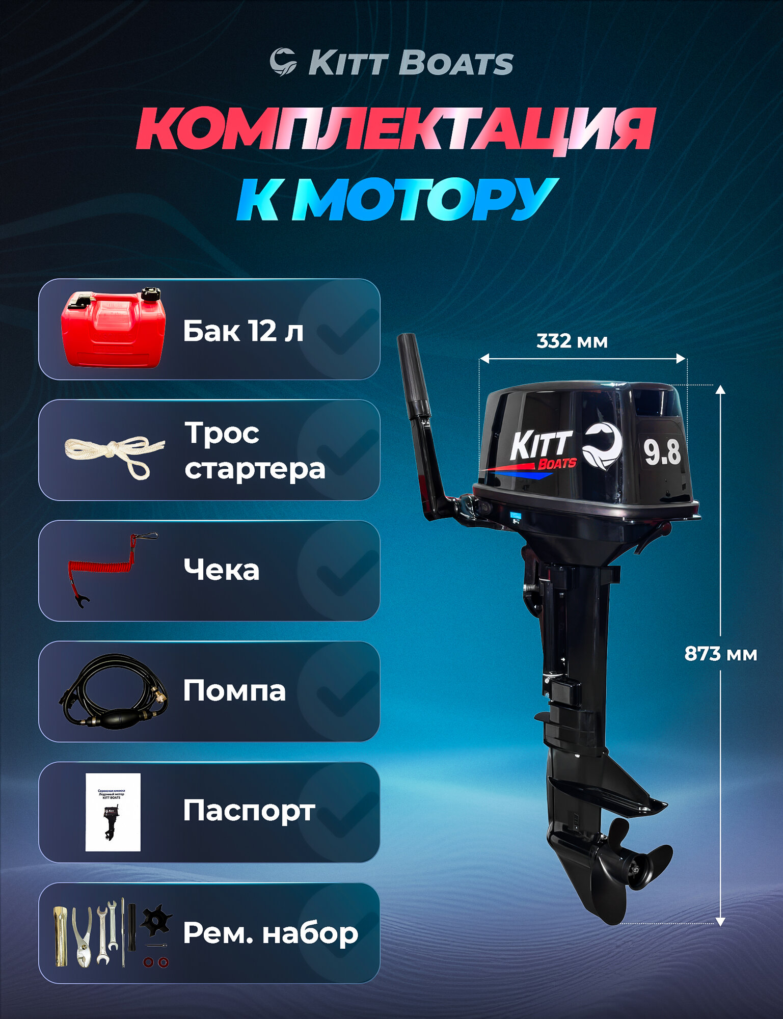 Купить Лодочный мотор KITT BOATS, 9.8, двухтактный, 169 см³, мощность 9.8л. с, ручной запуск с доставкой по всей России. Лодочный мотор KITT BOATS, 9.8, двухтактный, 169 см³, мощность 9.8л. с, ручной запуск: сравнение цен, характеристики, фото, актуальное наличие и цены.