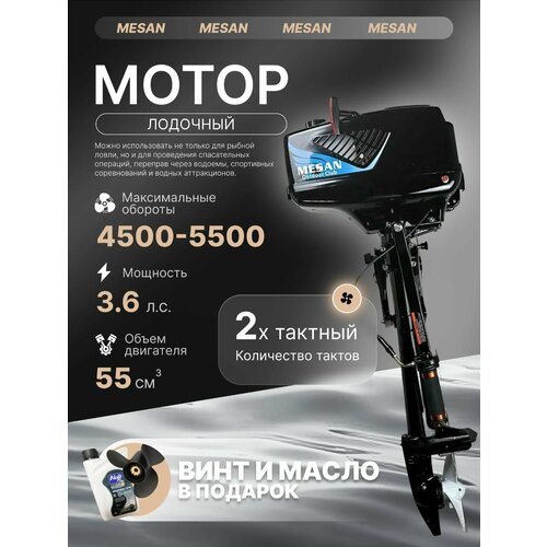 Купить Мотор лодочный MESAN 2-х тактный 3.6 лс, 2.6 КВт, 55 куб. см, с доставкой по всей России.