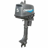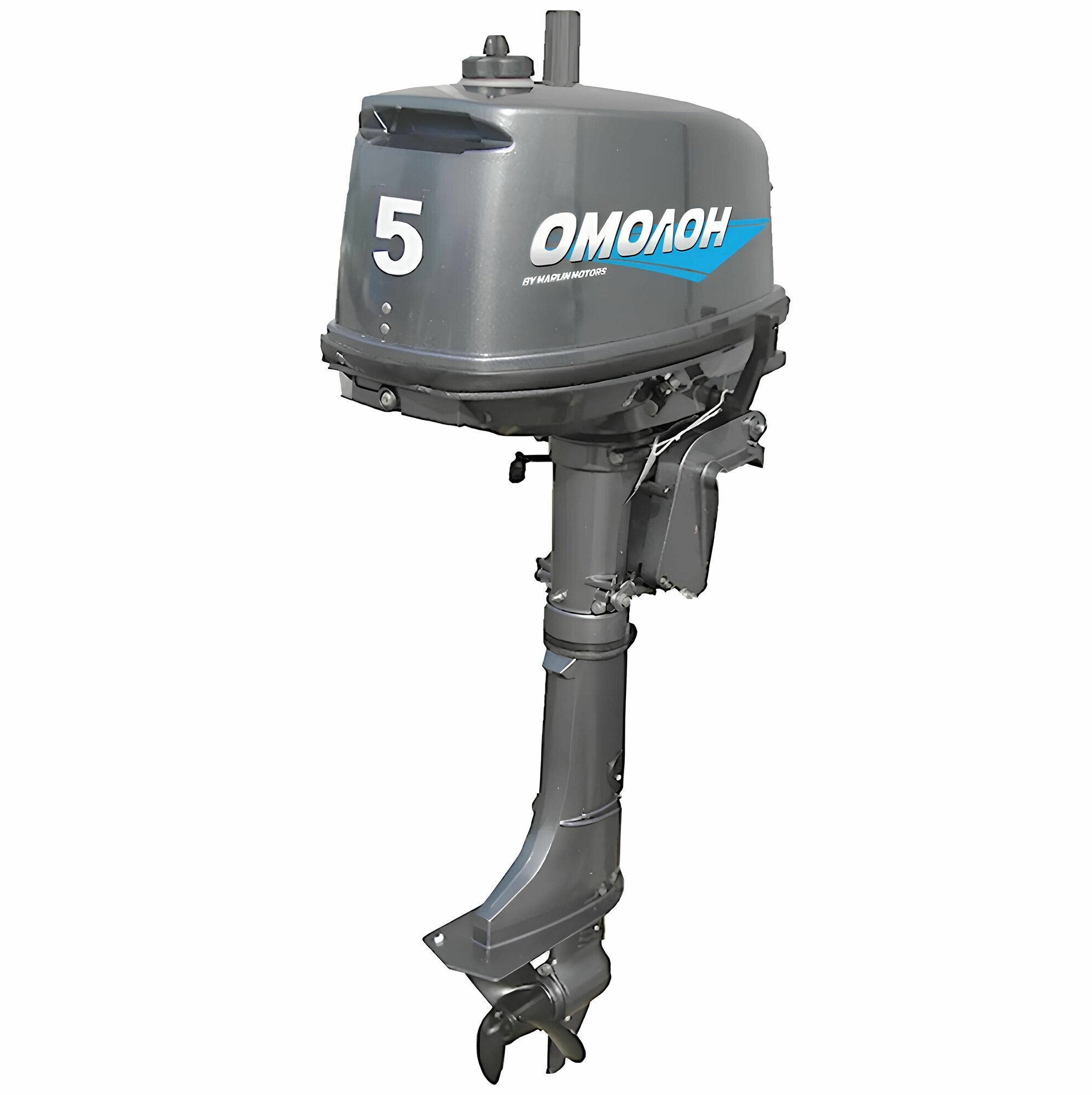 Подвесной лодочный мотор омолон 5 AMHS развивает мощность 5 л. с. при объеме 103 см3. Количество цилиндров – 1, диаметр цилиндра 54 мм, ход поршня 45 мм. Максимальное число оборотов в минуту находится в пределах от 4500 до 5500. Двигатель имеет карбюраторную систему питания, система зажигания CDI. Смазка движущихся частей осуществляется смесью бензина и масла в пропорциях 50:1. Охлаждение мотора для лодки водяное/термостатное регулирование.