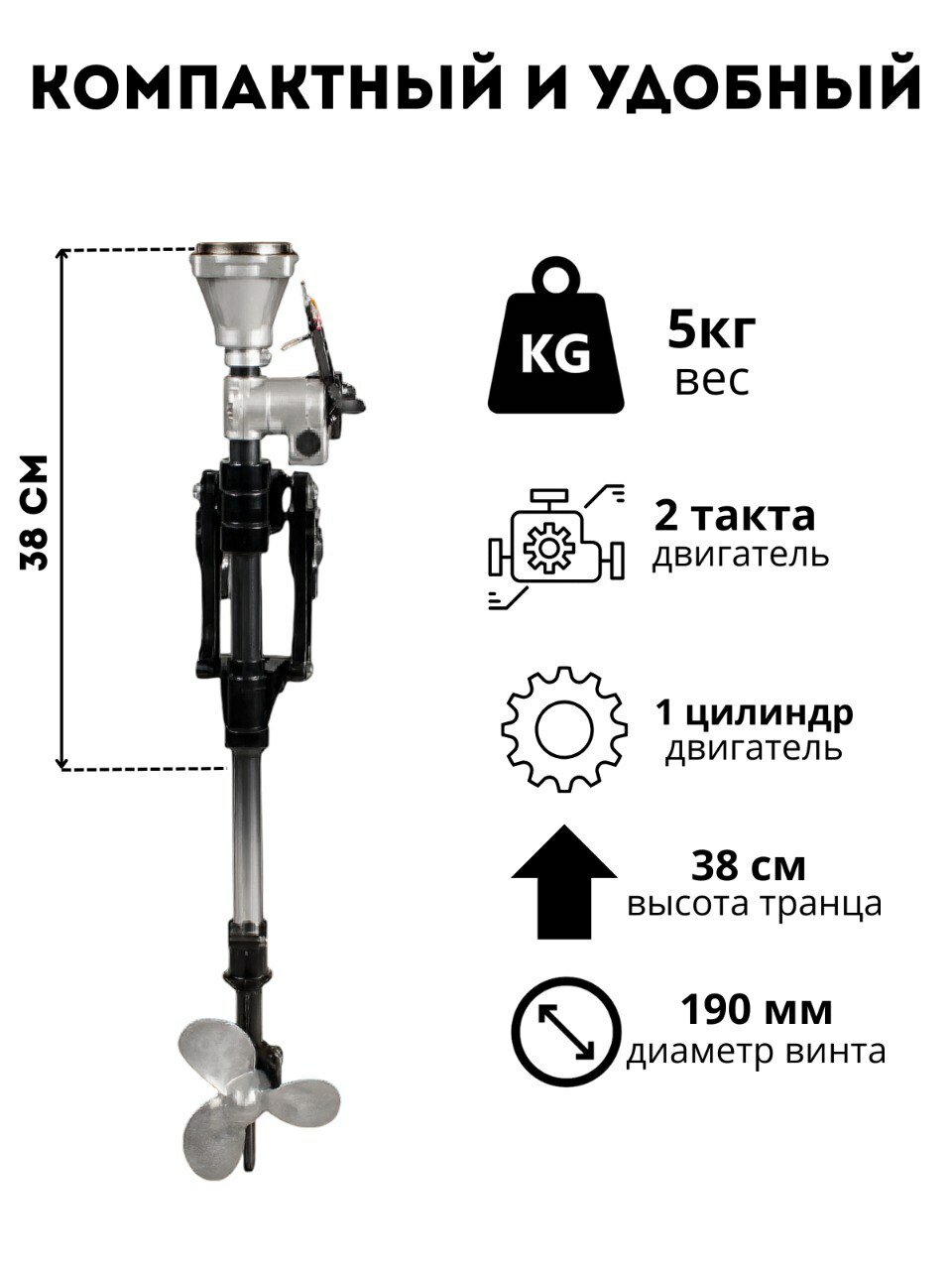 Лодочный мотор 3.5 л. с. двухтактный бензиновый подвесной для лодок ПВХ, резиновых и пластиковых