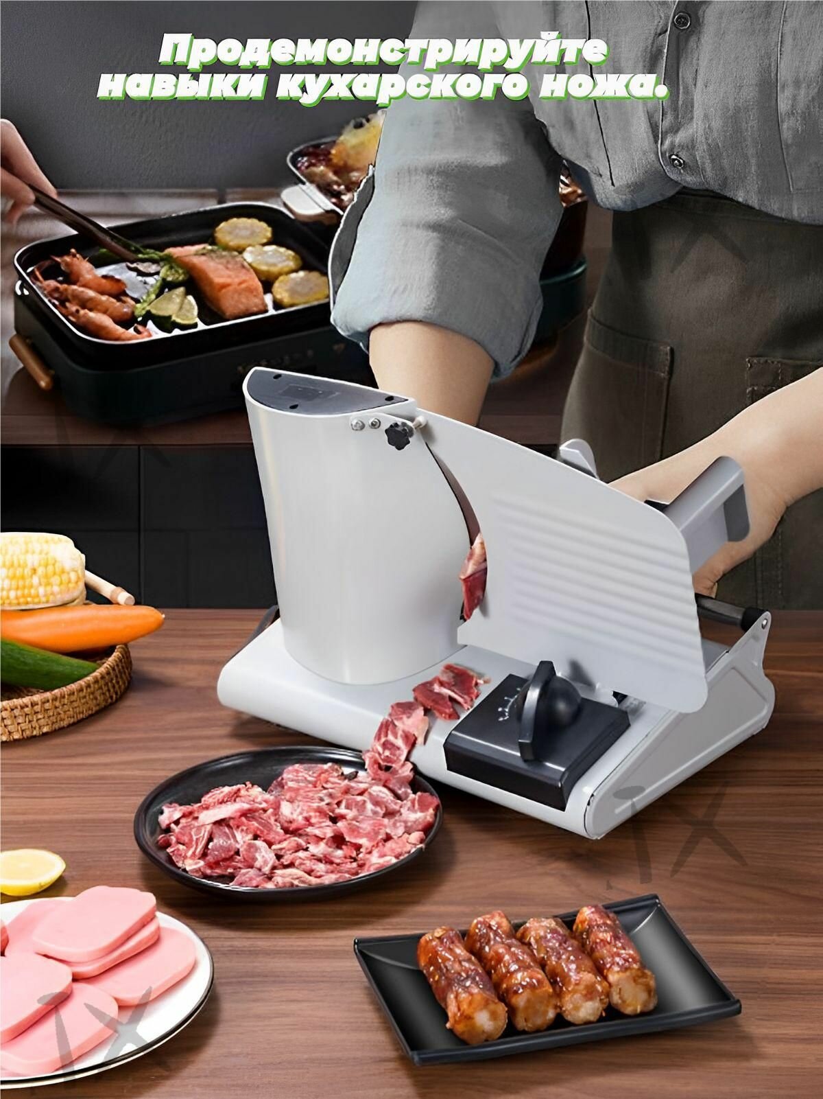 Купить Ломтерезка электрическая , слайсер для нарезки мяса, колбасы, сыра, овощей, бытовая техника для кухни1 с доставкой по всей России.