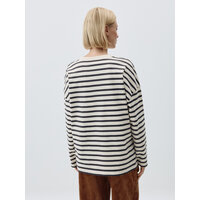 Яркий цвет лонгслива с крупной графикой и принтом в виде полосок подчеркнет вашу индивидуальность и добавит в образ нотку оригинальности.