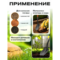 Прочный материал: корпус лопаты изготовлен из стали, что обеспечивает высокую прочность и долговечность инструмента. Вес лопаты составляет всего 1.7 кг, что делает ее удобной для работы и транспортировки.