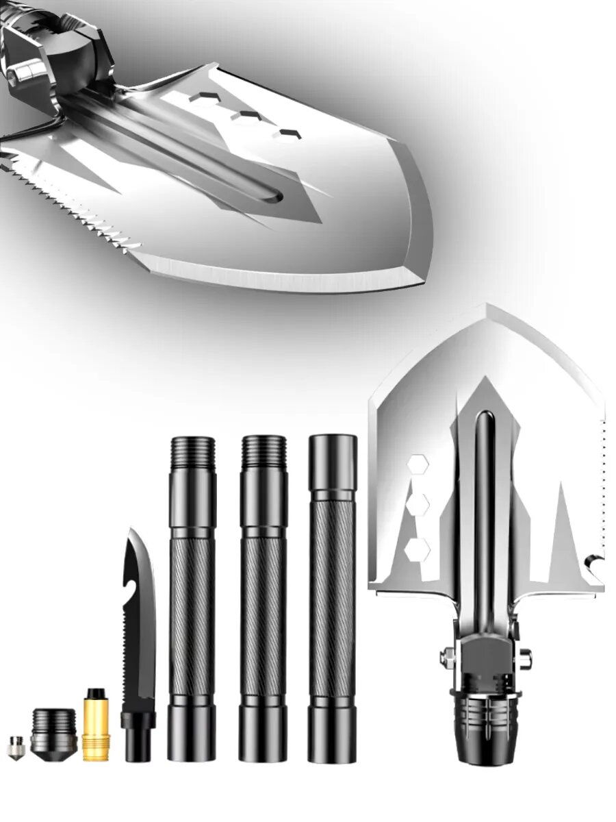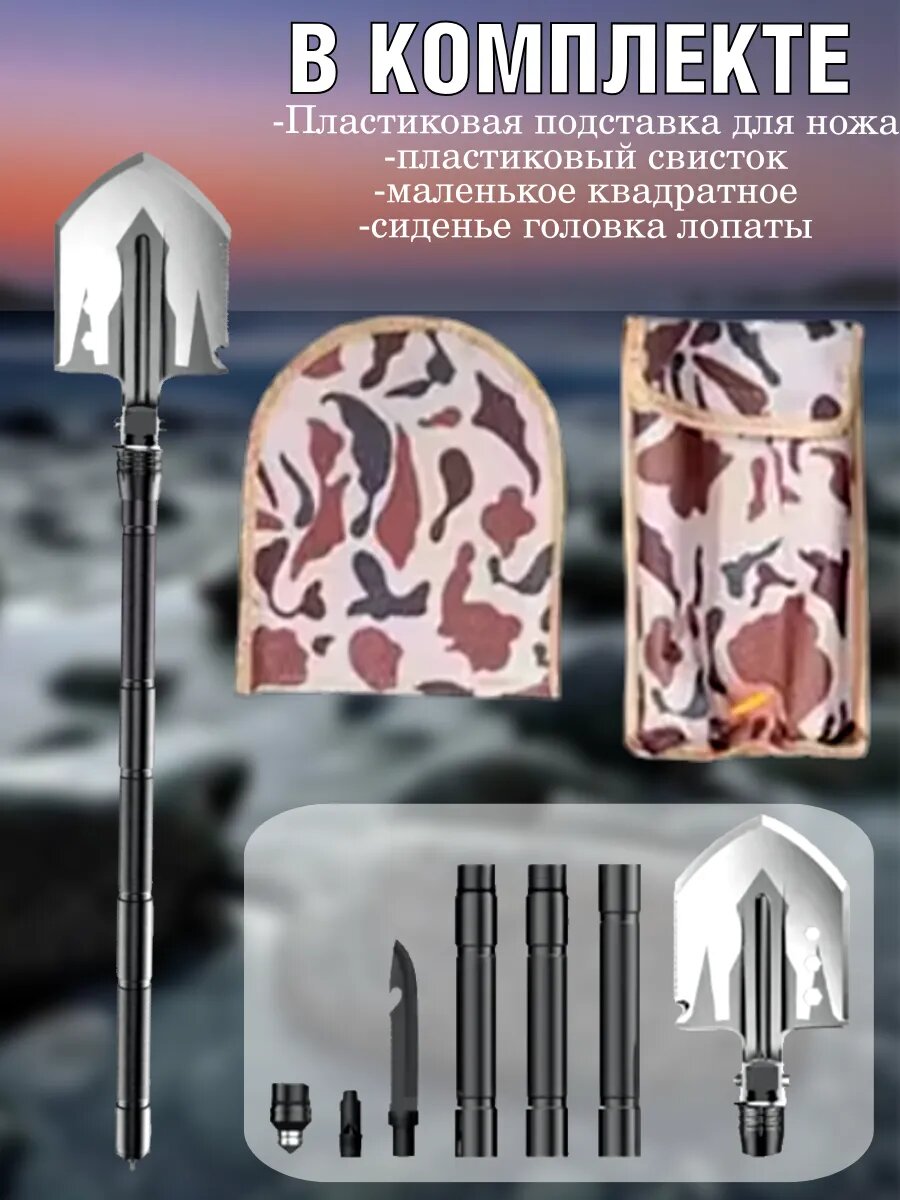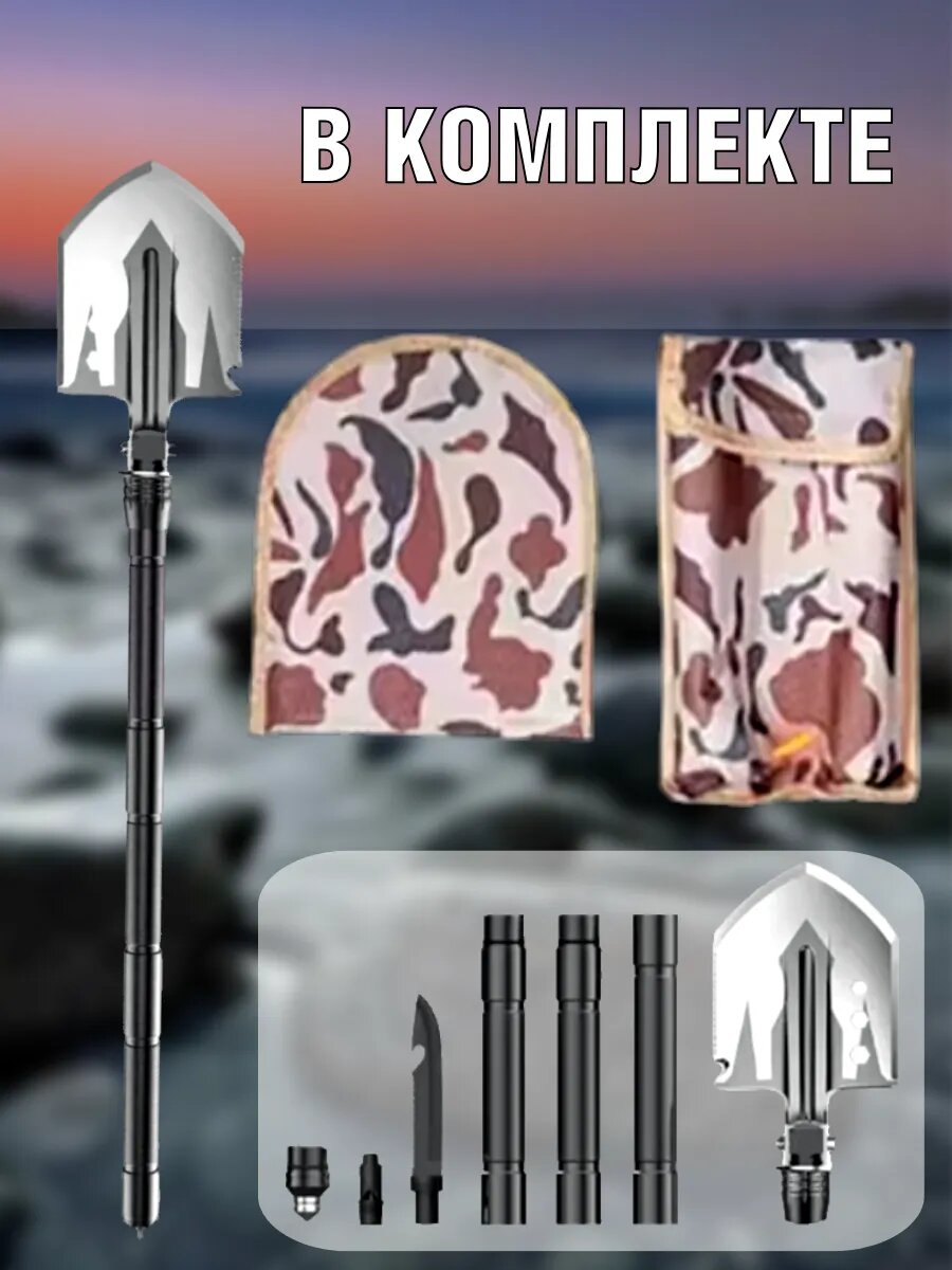 Многофункциональная складная походная лопата - незаменимый помощник для любителей активного отдыха, туризма и владельцев частных домов и земельных участков. Лопата изготовлена из качественного твердого сплава и имеет нержавеющее защитное покрытие, что обеспечивает долгий срок службы. Общая длина составляет 80 см, что делает ее удобной для использования в различных условиях. Лопата оснащена телескопическим черенком, что позволяет регулировать ее длину в зависимости от ваших потребностей. Это делает ее удобной для хранения и транспортировки. В комплекте с лопатой идут различные насадки, такие как мотыга, пила, топор, канаторез, свисток, огниво, стеклобой, открывашка или отвертка, тактический нож, гаечный ключ и линейка. Это позволяет использовать лопату для решения широкого спектра задач, от бытовых до экстремальных. Вес лопаты составляет всего 1,2 кг, что делает ее легкой и удобной для переноски. В целом, многофункциональная складная походная лопата станет отличным подарком для любителей активного отдыха, туризма, охоты, рыбалки и владельцев частных домов.