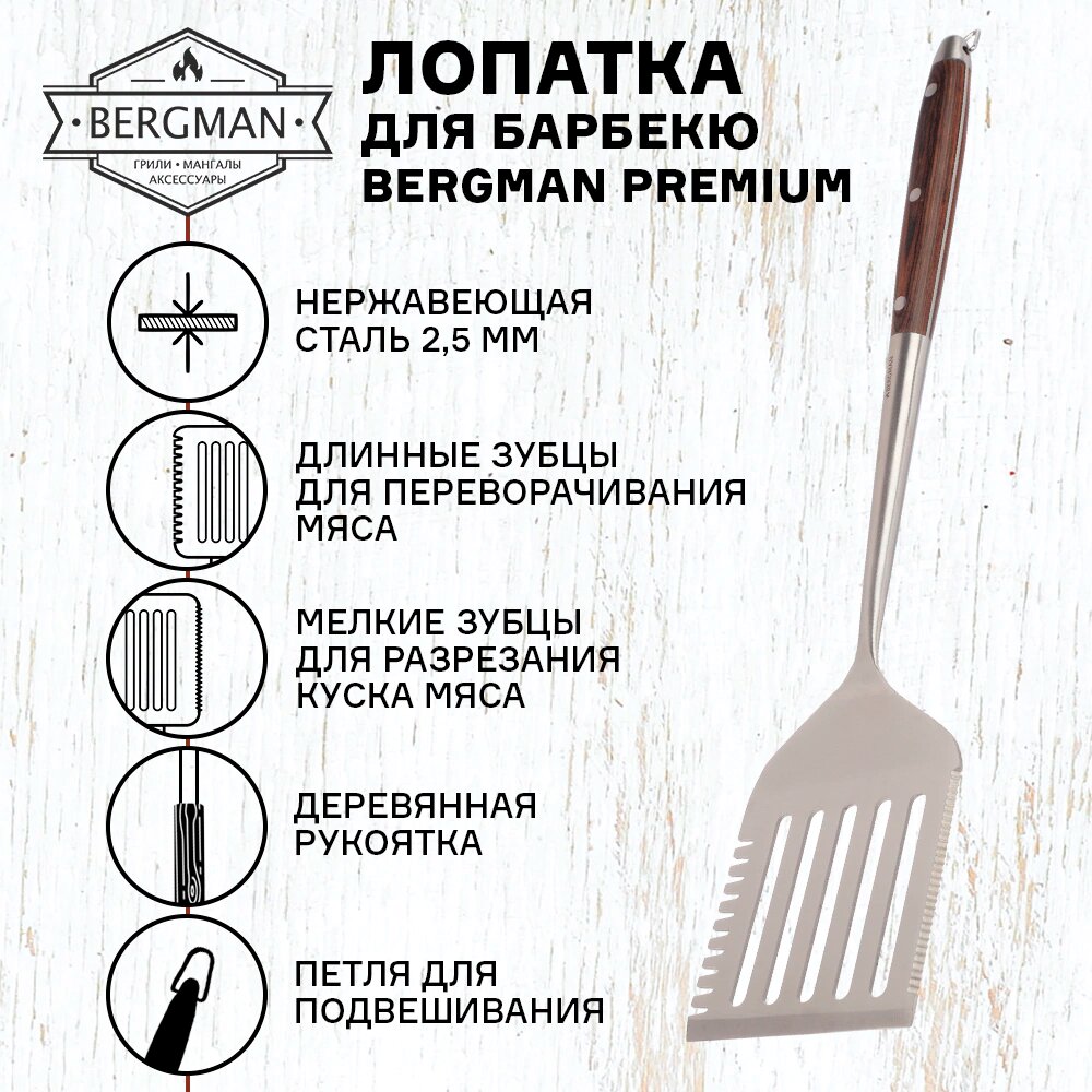 Лопатка для барбекю 48,5 см c деревянной рукояткой BERGMAN Premium: сравнение цен, характеристики, фото, актуальное наличие и цены.