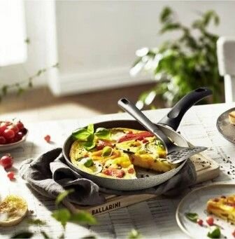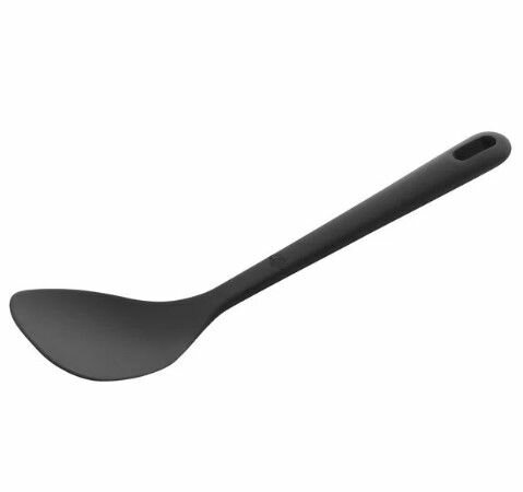 С лопаткой для сковороды BALLARINI Nero Вы сможете с легкостью переворачивать и помешивать продукты при приготовлении. Эргономичный дизайн и нескользящий материал не повредит антипригарное покрытие посуды. Пищевой силикон выдерживает температуру до 230°C. Отверстия на лопатке предотвращают разбрызгивание жира при переворачивании ингредиентов на сковороде. Также они позволяют стечь лишнему жиру от пожаренных овощей или стейка. Силиконовая лопатка BALLARINI Nero - незаменимый элемент любой хорошо оборудованной кухни. Благодаря практичному отверстию для подвешивания вы можете просто повесить ее, чтобы она всегда был под рукой. Лопатка для сковороды холодного черного цвета станет прекрасным декоративным элементом на вашем кухонном рейлинге. Ее эргономичный дизайн разработан миланской дизайнерской студией Matteo Thun & Antonio Rodriguez.