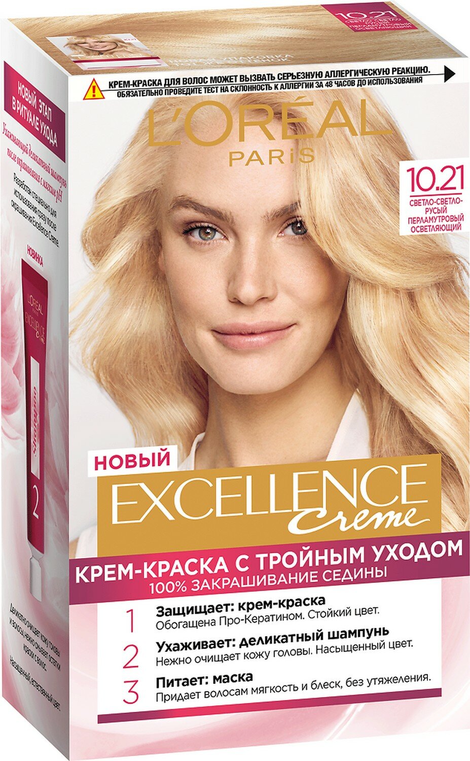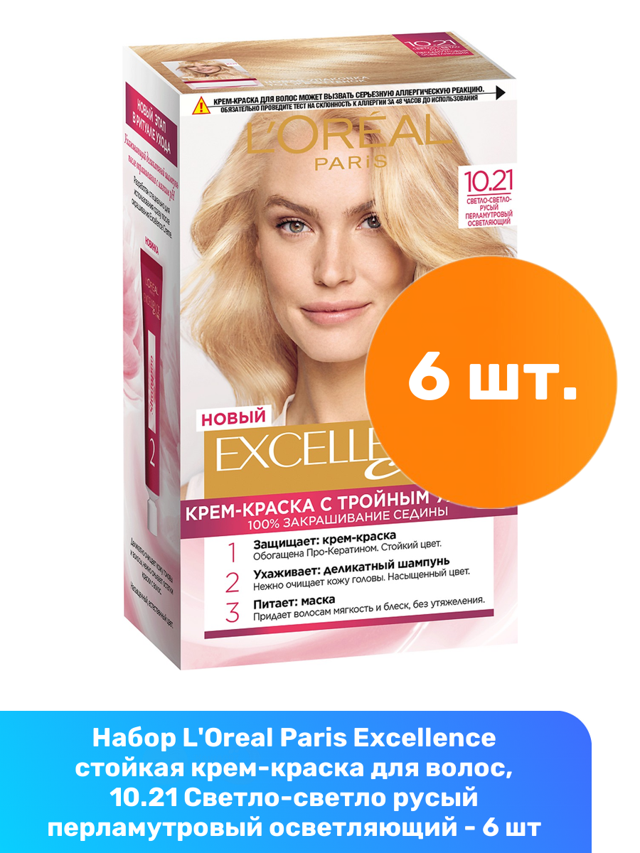 L’Oreal Paris Excellence стойкая крем-краска для волос, 10.21 Светло-светло русый перламутровый осветляющий — 6 шт: сравнение цен, характеристики, фото, актуальное наличие и цены.