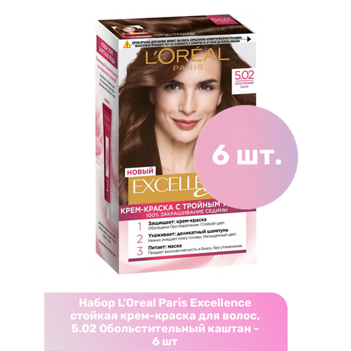L’Oreal Paris Excellence стойкая крем-краска для волос, 5.02 Обольстительный каштан — 6 шт: сравнение цен, характеристики, фото, актуальное наличие и цены.
