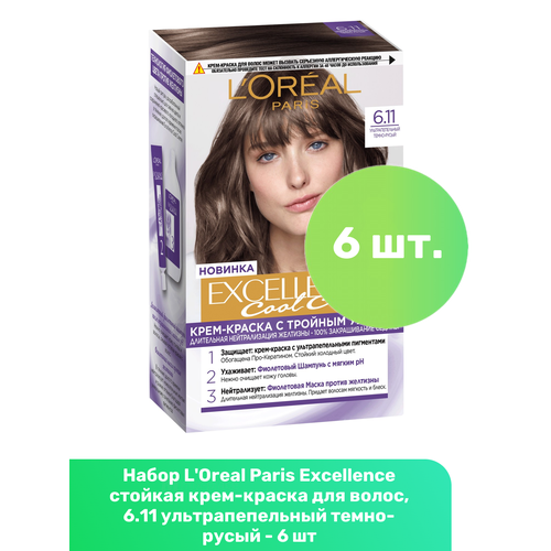 Купить L’Oreal Paris Excellence стойкая крем-краска для волос, 6.11 ультрапепельный темно-русый — 6 шт с доставкой по всей России.