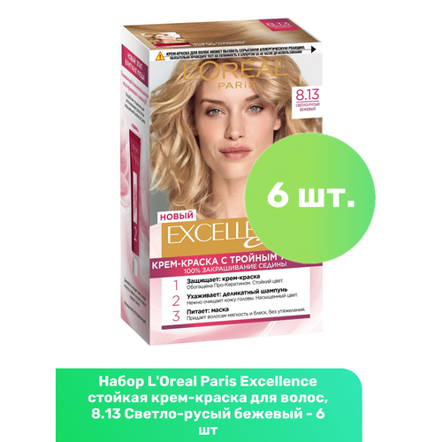 Купить L’Oreal Paris Excellence стойкая крем-краска для волос, 8.13 Светло-русый бежевый — 6 шт с доставкой по всей России.