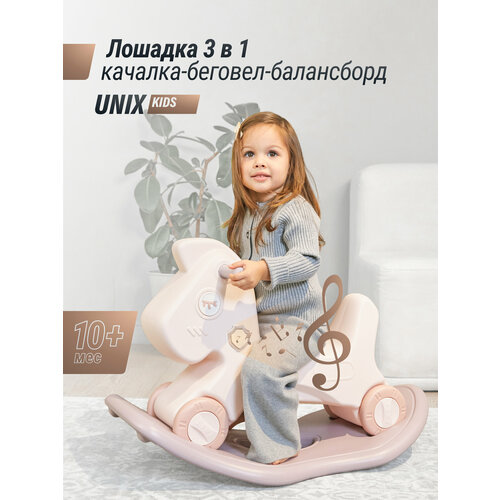 Купить Лошадка-качалка-беговел UNIX Kids, розовый, трансформер для детей, для мальчиков, для девочек, пластик с доставкой по всей России.