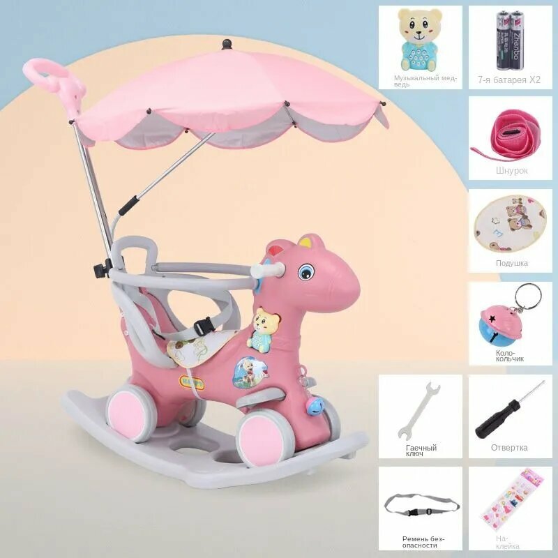 Лошадка-качалка-каталка с ручкой для детей и беговел, для дома и улицы,1-4 года: сравнение цен, характеристики, фото, актуальное наличие и цены.