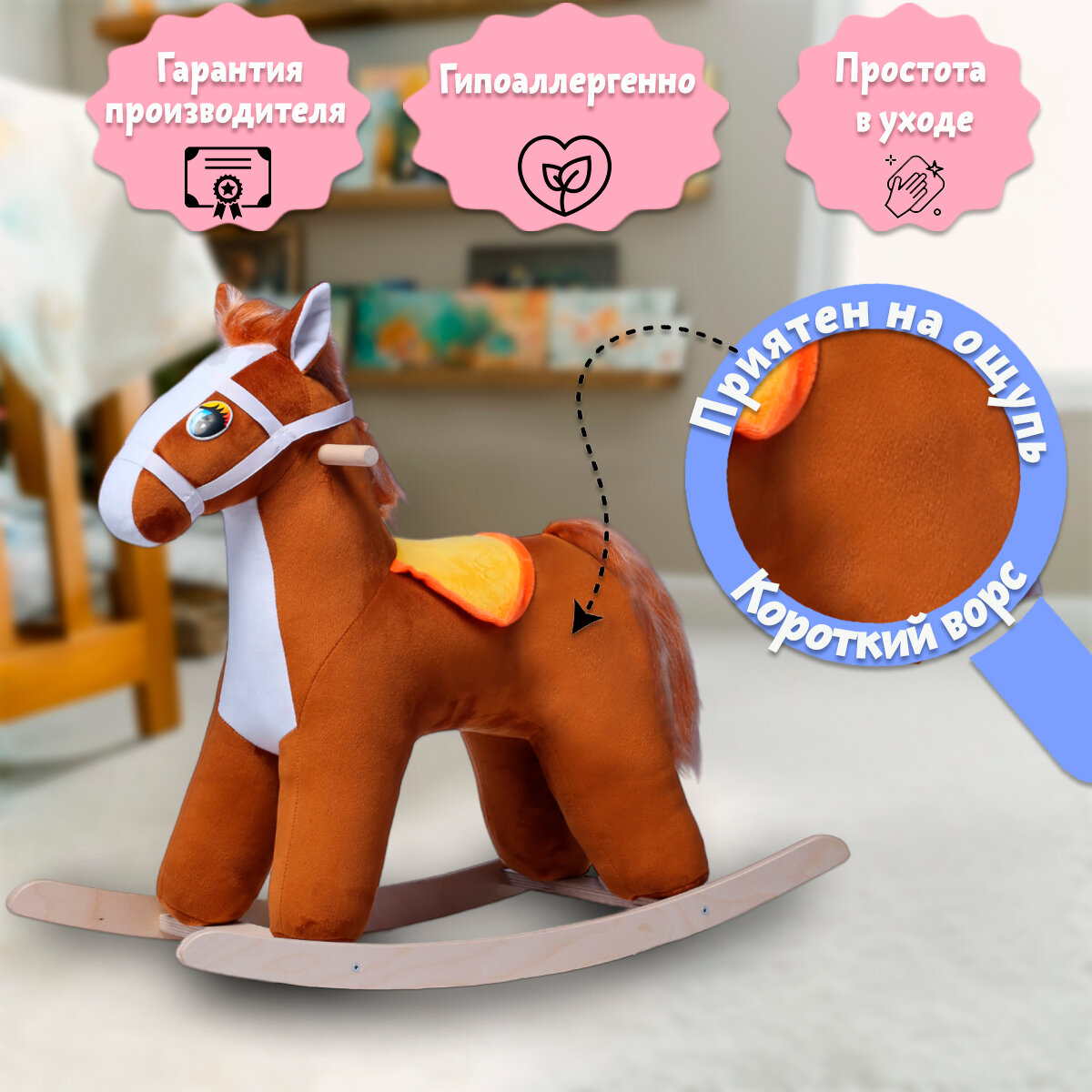 Лошадка качалка - это не просто развлечение, это еще и тренажер для развития моторики и координации движений. Ребенок, катаясь на лошадке, развивает чувство равновесия и тренирует двигатель-моторную координацию.