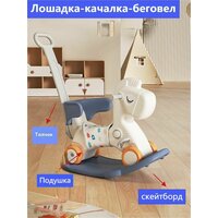 Лошадка-каталка, интерактивная, с ручкой, для детей от 1 года, синий/кремовый: сравнение цен, характеристики, фото, актуальное наличие и цены.