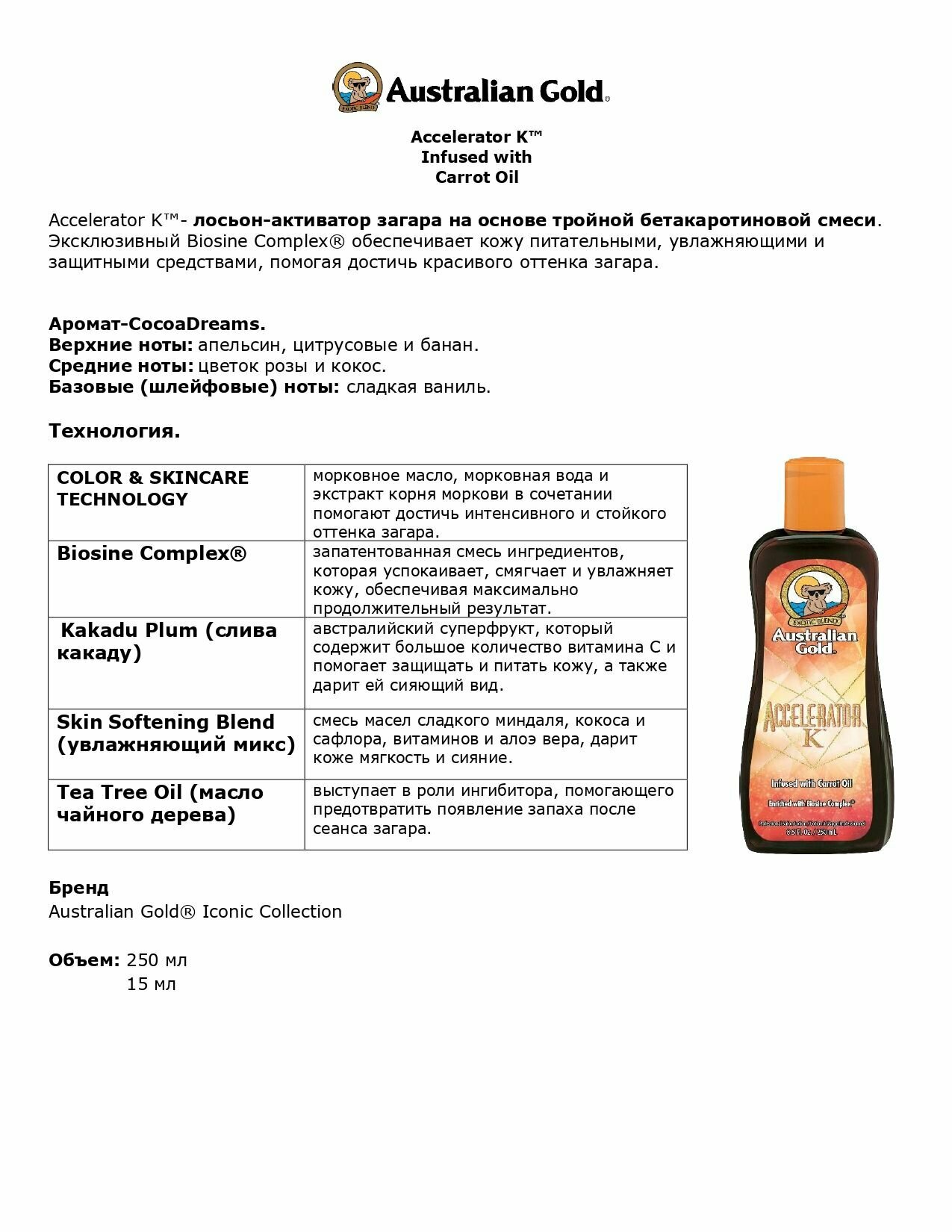 Лосьон-активатор для загара Accelerator K от Australian Gold: сравнение цен, характеристики, фото, актуальное наличие и цены.