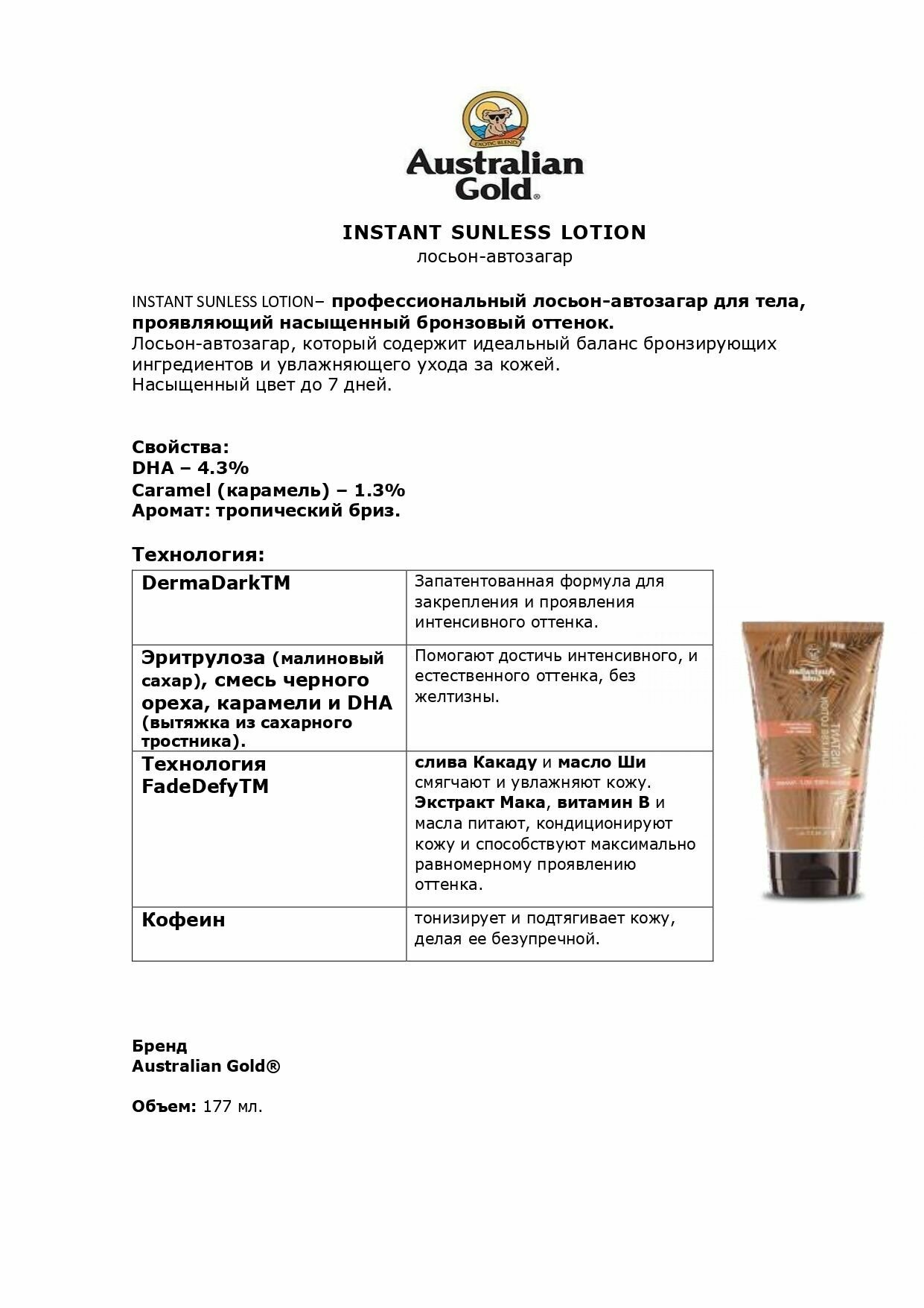 Лосьон-автозагар для мужчин и женщин Australian Gold Instant Sunless Lotion: сравнение цен, характеристики, фото, актуальное наличие и цены.