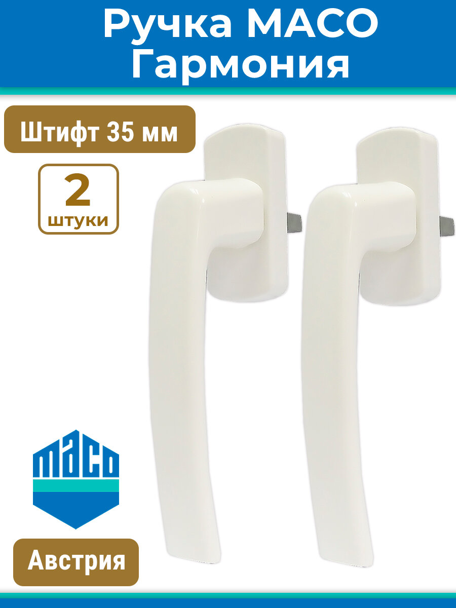 Лот 2 шт: Ручка для ПВХ окна Мако Гармония Maco Harmony, штифт 35 мм, цвет белый: сравнение цен, характеристики, фото, актуальное наличие и цены.