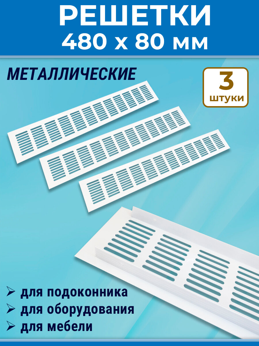 Купить Лот 3 шт: Решетка 480 х 80 мм вентиляционная алюминий, белая с доставкой по всей России. Лот 3 шт: Решетка 480 х 80 мм вентиляционная алюминий, белая: сравнение цен, характеристики, фото, актуальное наличие и цены.