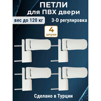 Купить Лот 4 шт: Петля дверная для дверей ПВХ весом до 120 кг, регулируемая белая с доставкой по всей России.