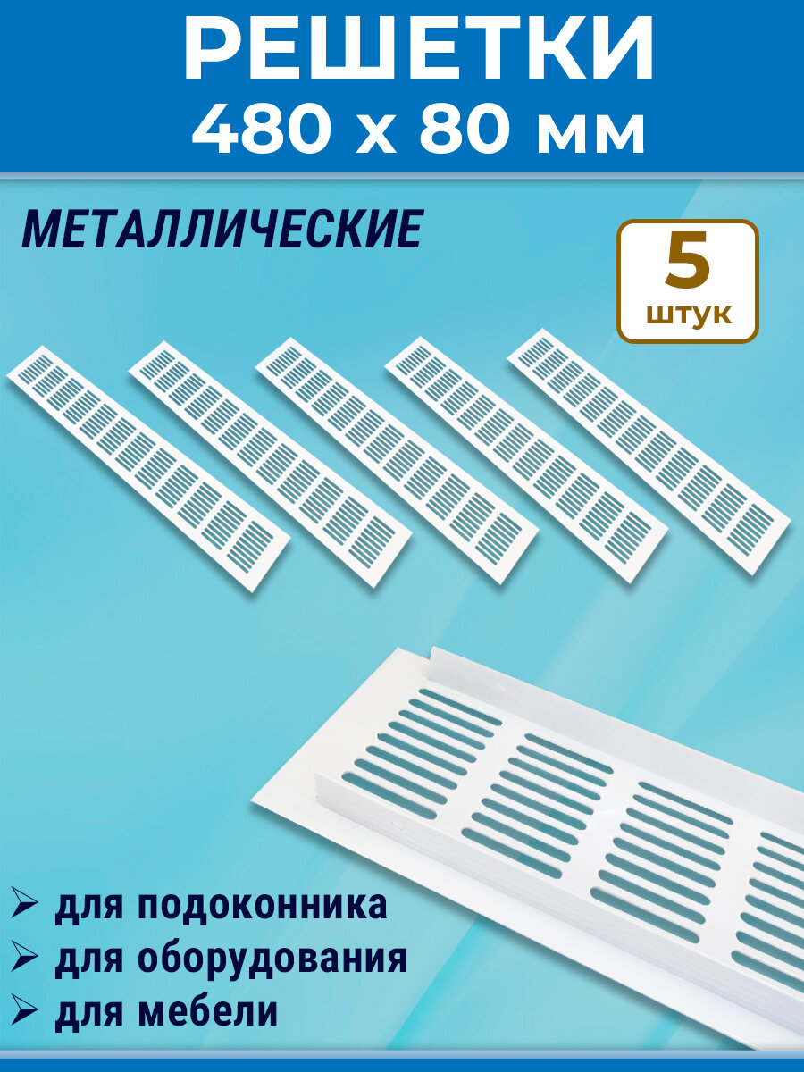 Купить Лот 5 шт: Решетка 480 х 80 мм вентиляционная алюминий, белая с доставкой по всей России. Лот 5 шт: Решетка 480 х 80 мм вентиляционная алюминий, белая: сравнение цен, характеристики, фото, актуальное наличие и цены.
