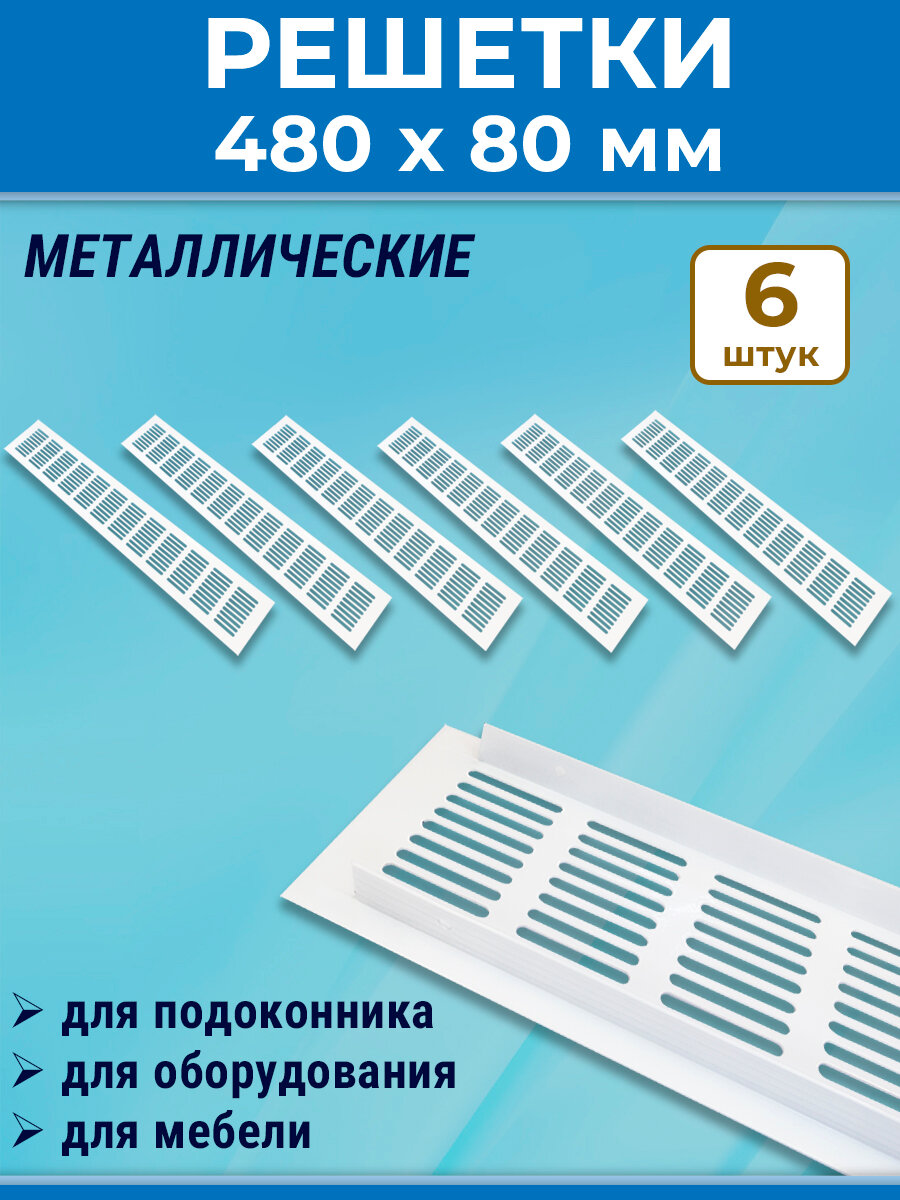 Купить Лот 6 шт: Решетка 480 х 80 мм вентиляционная алюминий, цвет белый с доставкой по всей России. Лот 6 шт: Решетка 480 х 80 мм вентиляционная алюминий, цвет белый: сравнение цен, характеристики, фото, актуальное наличие и цены.