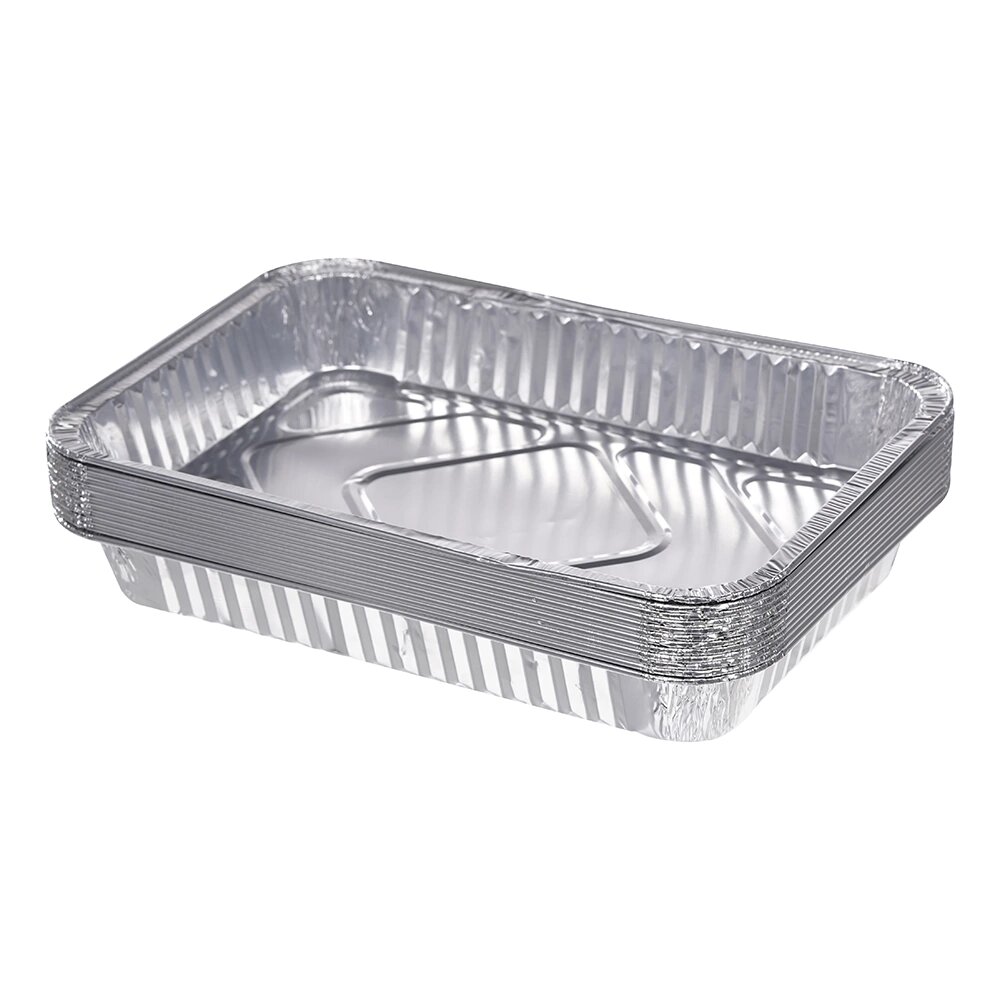 Одноразовые алюминиевые контейнеры для запекания мяса, птицы, рыбы, овощей и морепродуктов на открытом огне. Обладают оптимальными размерами и вместимостью. За счет бортиков можно готовить блюда с соусами. Подходят для разогрева, хранения, транспортировки готовых блюд. В наборе 12 штук.