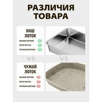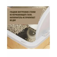 Лоток изготовлен из качественного и безопасного материала, который легко очищается и устойчив к повреждениям. Его просторная конструкция обеспечивает достаточное пространство для вашего питомца, создавая комфортные условия для пользования туалетом. Это особенно важно для больших или активных кошек, которые нуждаются в свободы движений.