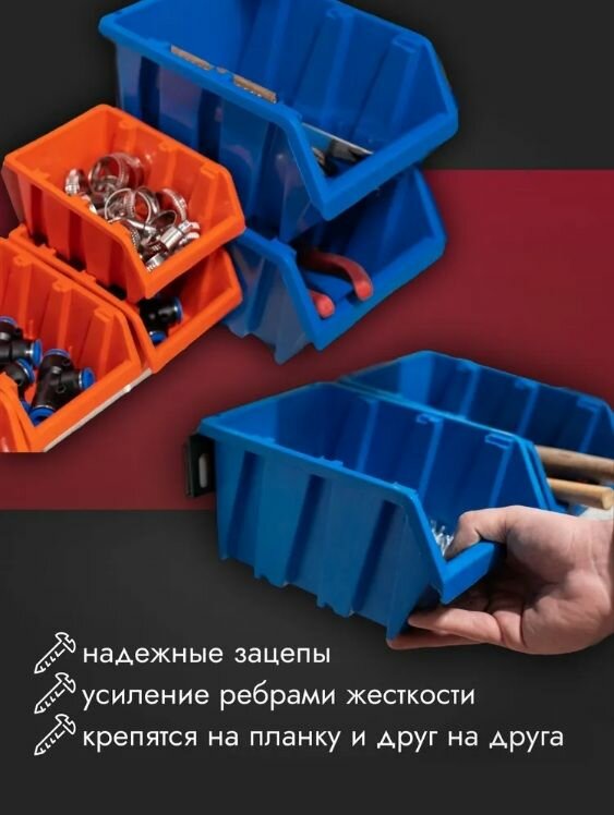 Предназначен для хранения крепежа и мелкого инструмента. Изготовлен из высококачественного пластика. Лотки надежно ставятся друг на друга за счет системы крепления. Оптимальная конструкция передней части позволяет удобно доставать метизы.