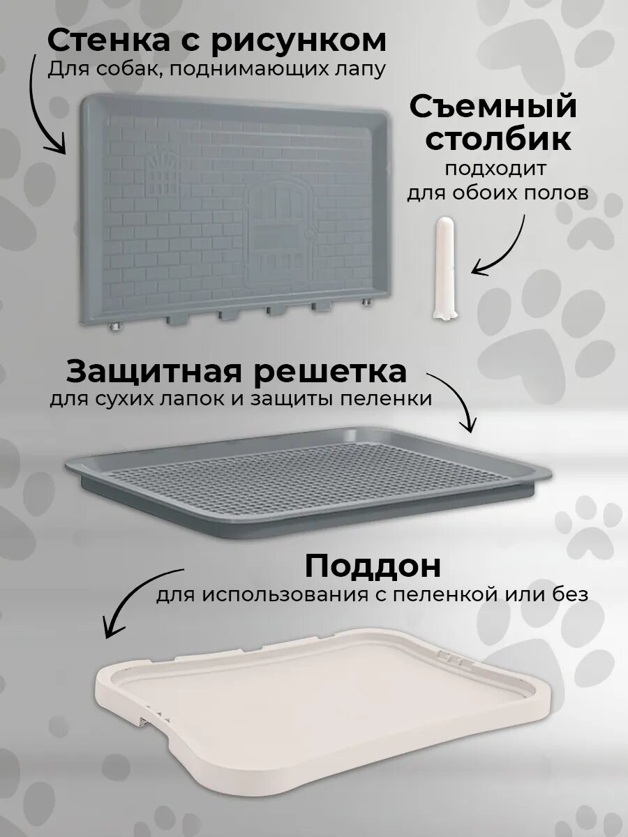 Лоток для собак Conflate, туалет для собак и щенков, со стенкой, столбиком, поддоном, 51*39 серый: сравнение цен, характеристики, фото, актуальное наличие и цены.