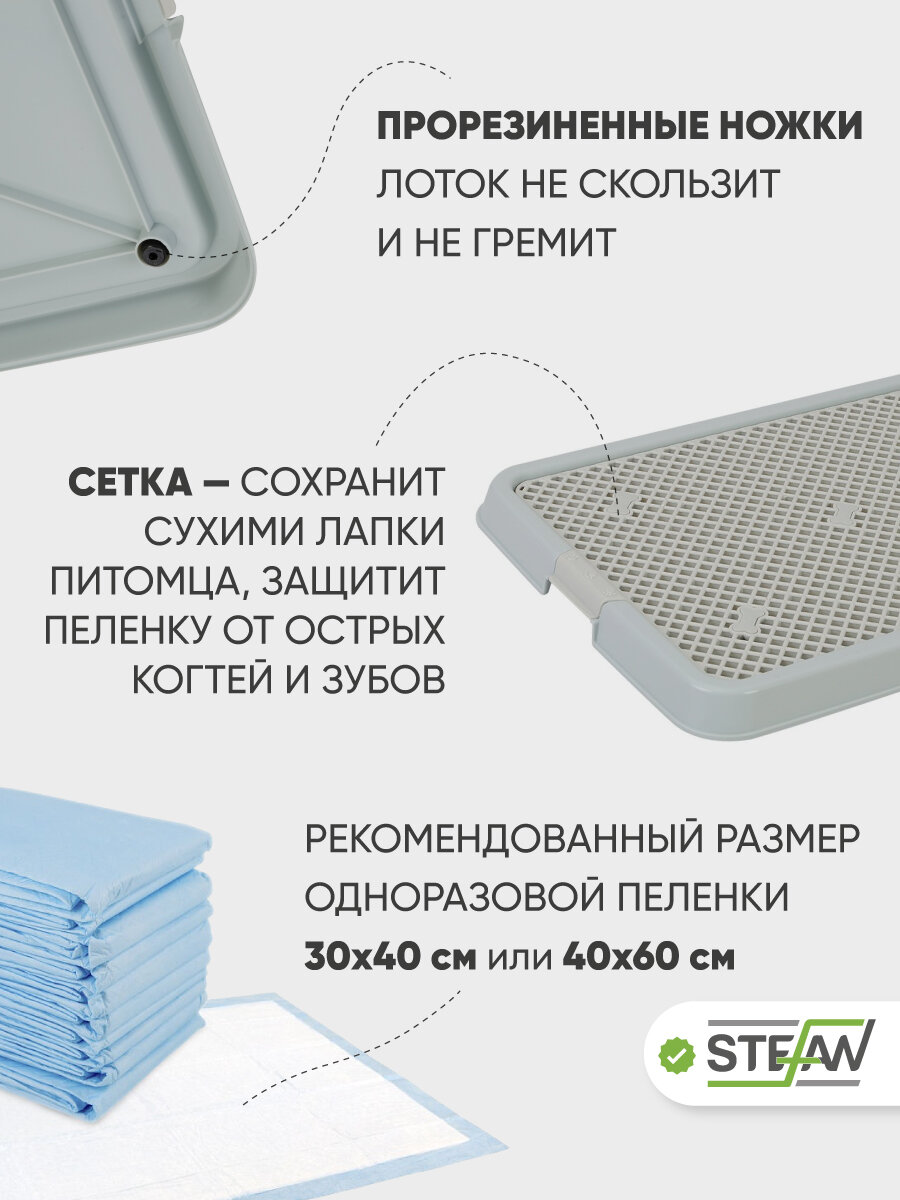 Лоток для собак с сеткой STEFAN (Штефан) под пеленку (S) 50х38х3,5см, серо-голубой, BP1305NG: сравнение цен, характеристики, фото, актуальное наличие и цены.