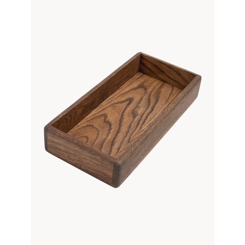 Лоток выполнен в шоколадном цвете, который гармонично сочетается с любым интерьером и придает ему уют. Материал - дуб, что гарантирует его прочность и долговечность.