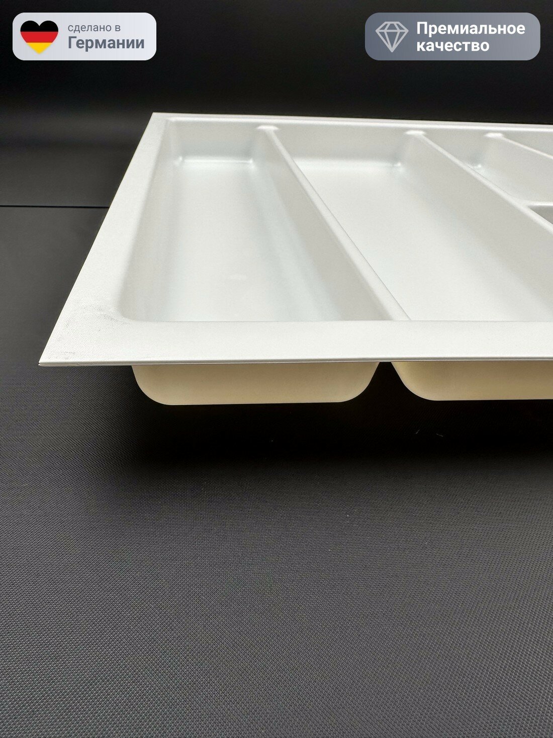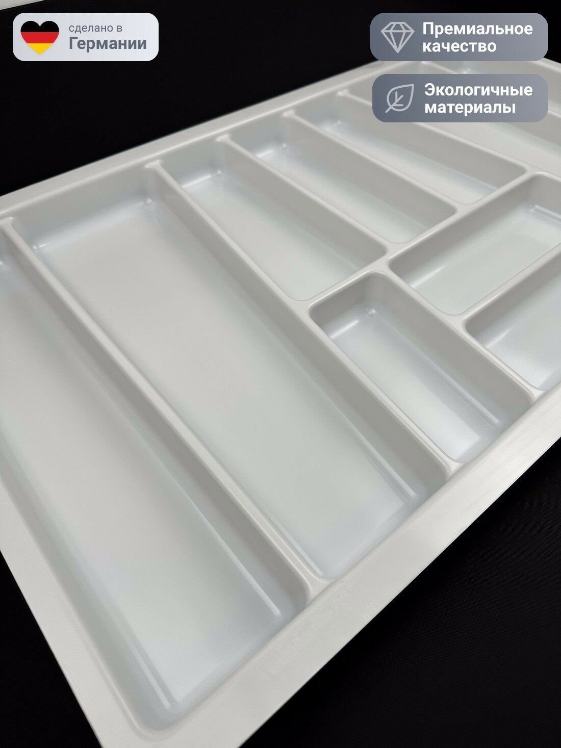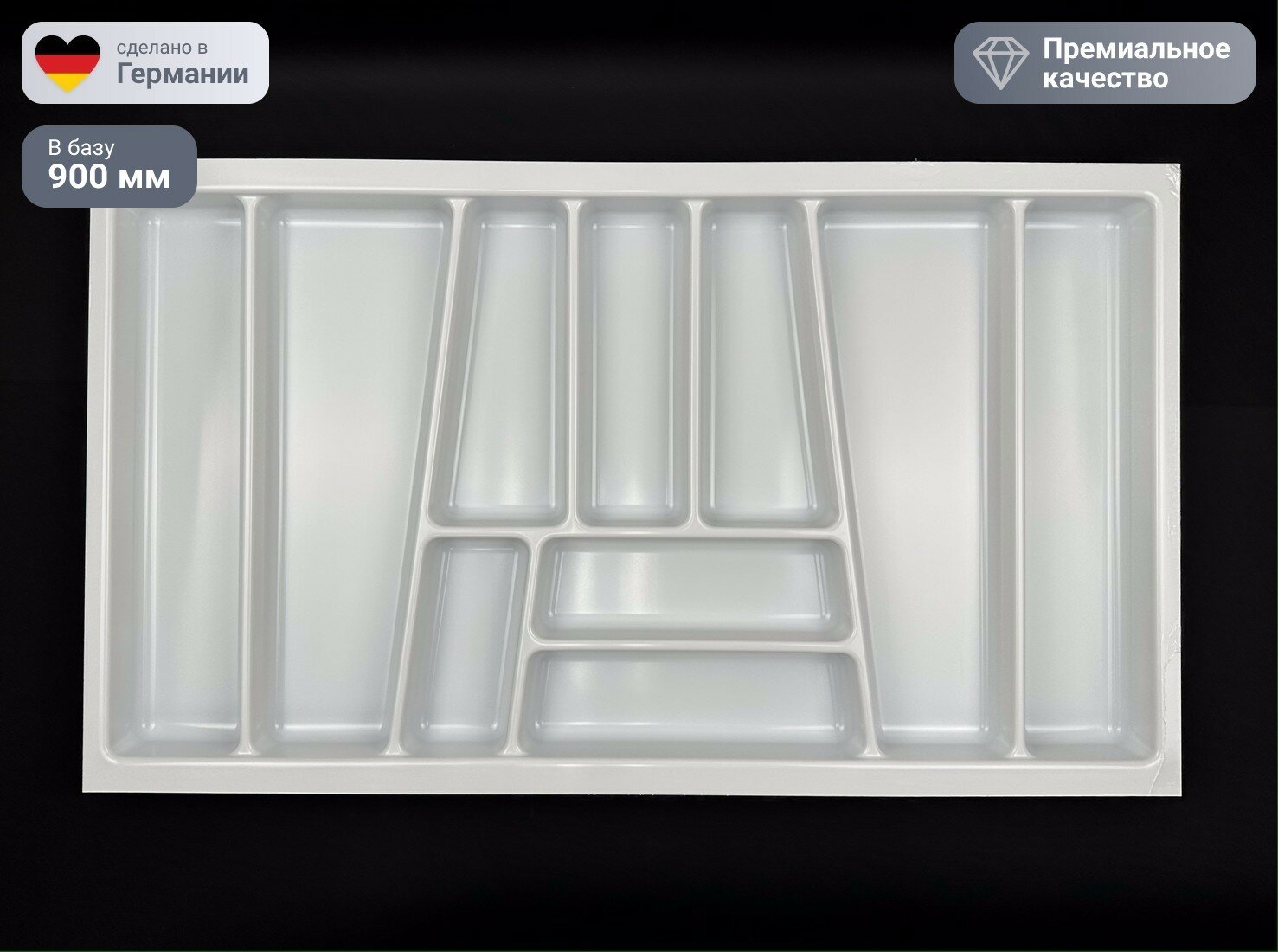 Лоток для столовых приборов белый глянец подходит под ящик размером 900/500 мм.