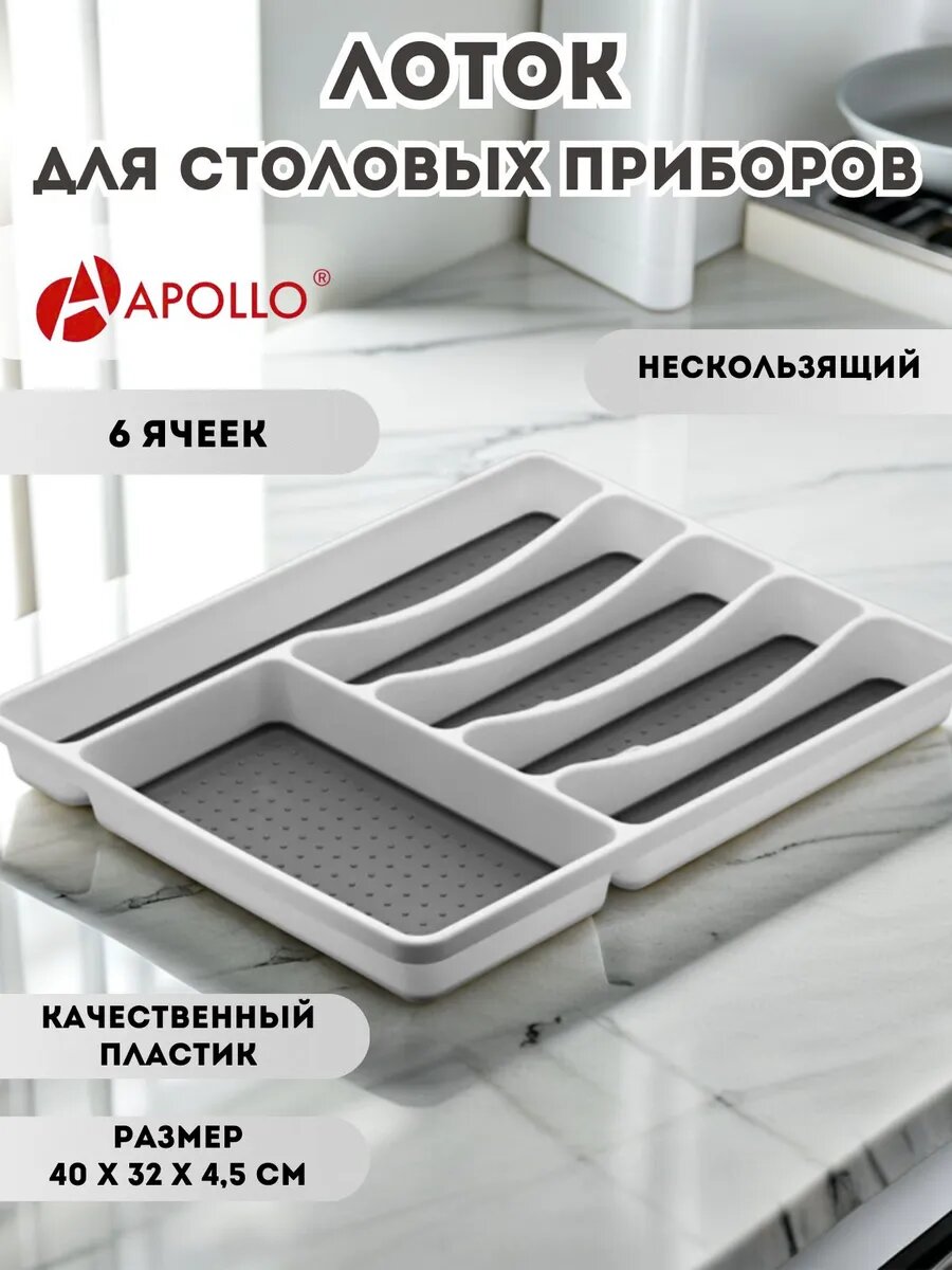 Лоток для столовых приборов «Apollo Liner», пластик, нескользящий, 6 отсеков: сравнение цен, характеристики, фото, актуальное наличие и цены.