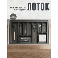 Лоток для столовых приборов, 800, антрацит - кухонный аксессуар, необходимый практически в любом доме. Лоток позволяет удобно рассортировать внутри кухонного ящика ложки, вилки, ножи и другие постоянно используемые столовые приборы. Лоток специально подбирается под размеры конкретного ящика стола или кухонного гарнитура.