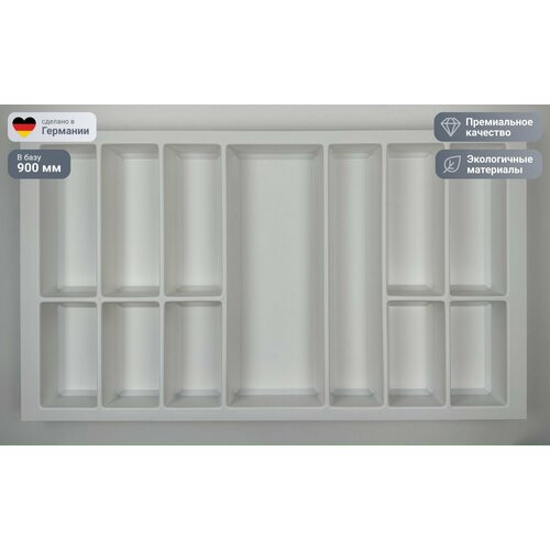 Лоток для столовых приборов белый матовый подходит под ящик размером 900/500 мм.