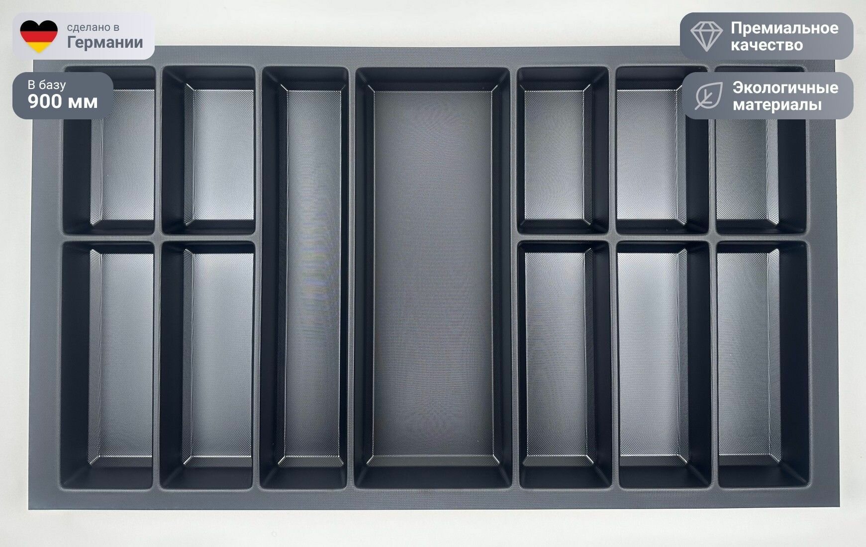 Лоток для столовых приборов черный матовый подходит под ящик размером 900/500 мм.