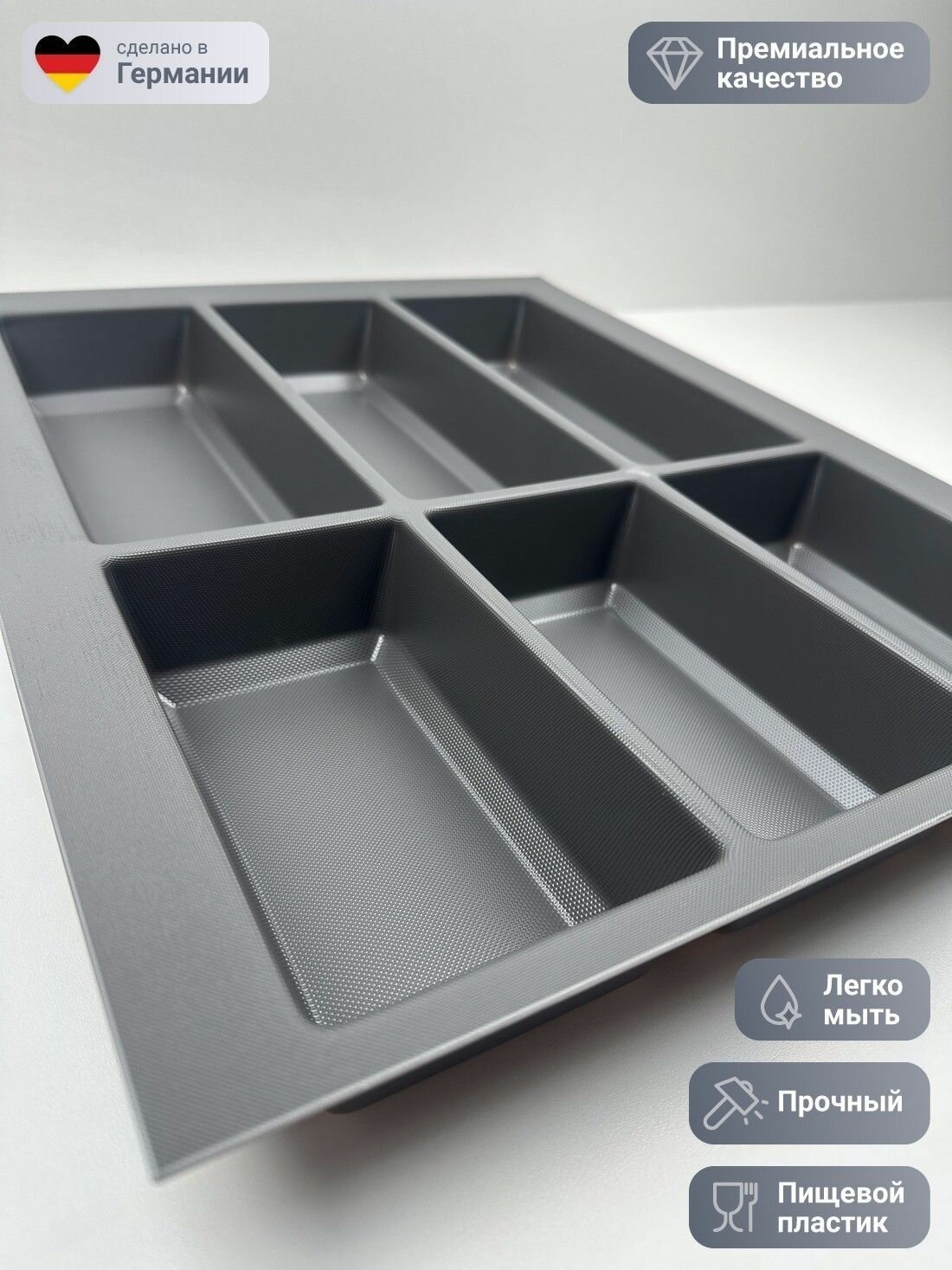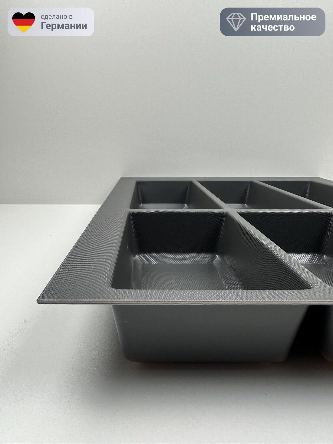 Лоток для столовых приборов серый орион подходит под ящик размером 450/500 мм.