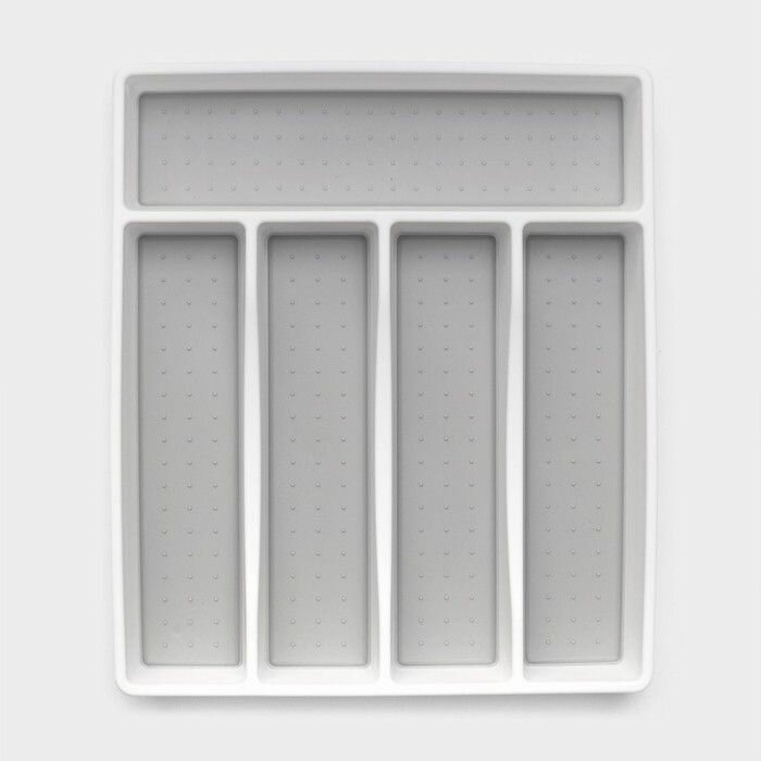 Купить Лоток для столовых приборов Griten, с силиконовой вставкой, 5 отделений, 33,5 29,3 4,5 см, цвет белый с доставкой по всей России. Лоток для столовых приборов Griten, с силиконовой вставкой, 5 отделений, 33,5 29,3 4,5 см, цвет белый: сравнение цен, характеристики, фото, актуальное наличие и цены.
