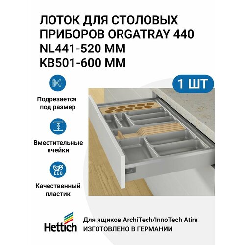 Лоток для столовых приборов HETTICH OrgaTray 440 для ящиков ArciTech/InnoTech Atira, T441-520 мм, B501 — 600 мм, цвет серебристый: сравнение цен, характеристики, фото, актуальное наличие и цены.