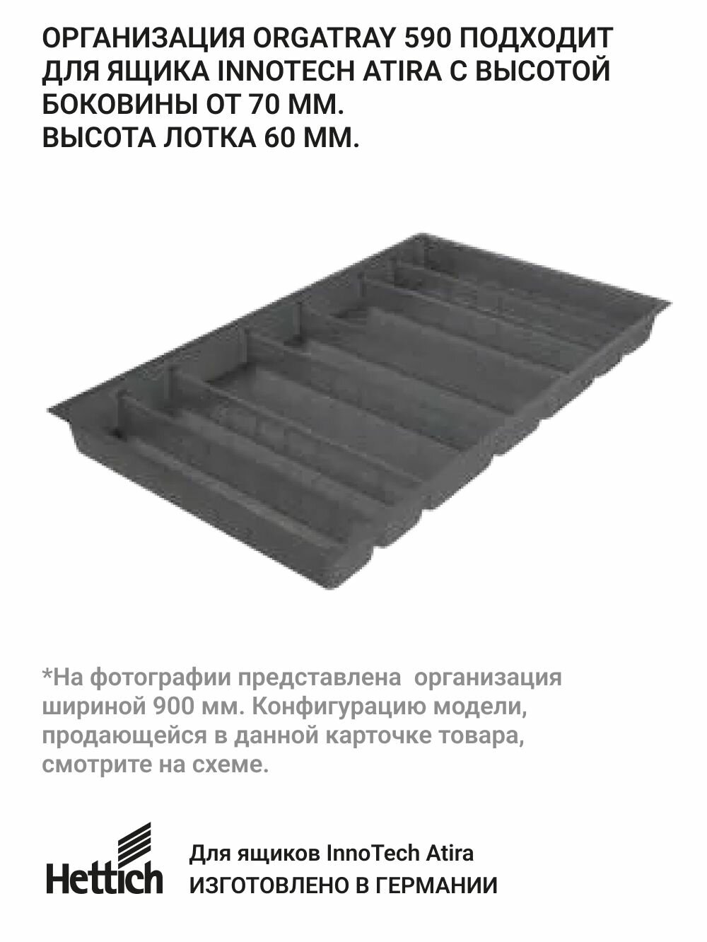 Купить Лоток для столовых приборов HETTICH OrgaTray 590 для ящиков InnoTech Atira в базу 600 мм, 507х462 мм, цвет антрацит с доставкой по всей России.
