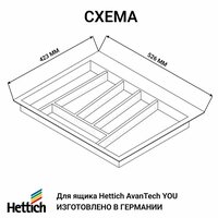 Hettich OrgaTray 740 – серия эргономичных и функциональных организационно-разделительных лотков для универсального использования. Подходит для ящика AvanTech YOU с высотой боковины от 101 мм. Для стандартной ширины корпуса, для толщины боковины 16 мм.