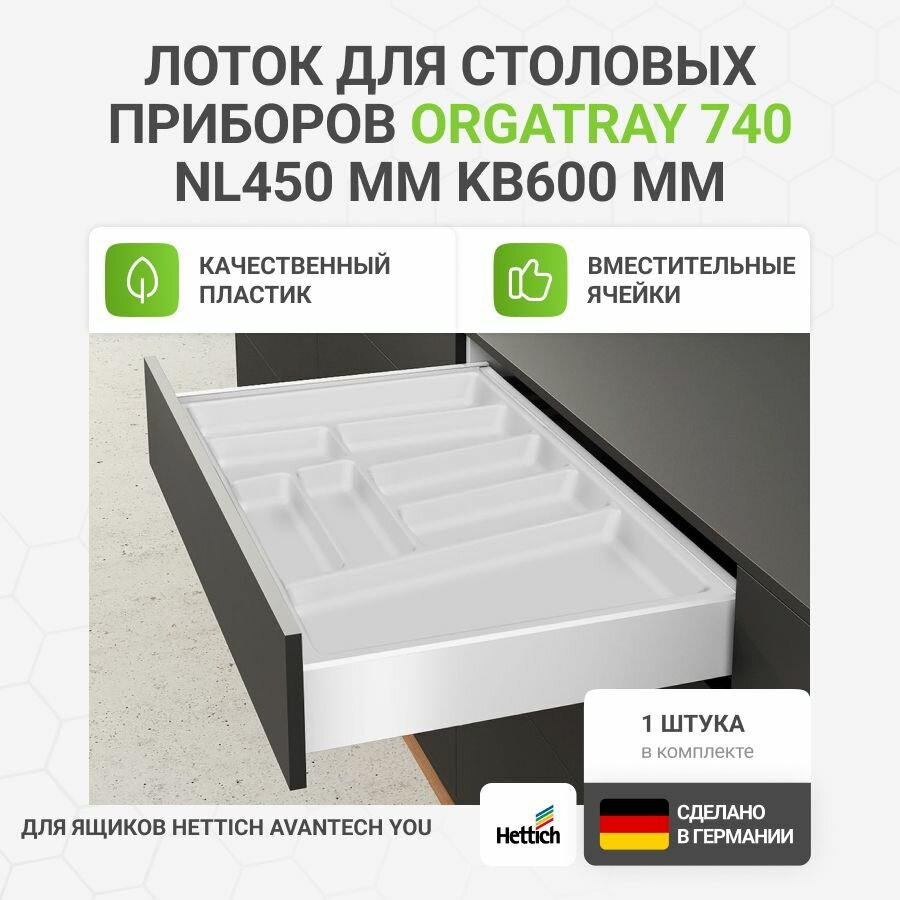 Разделители в лотке позволяют удобно организовать пространство, что делает его не только практичным, но и эстетически привлекательным. Кроме того, Hettich OrgaTray 740 изготовлен из качественных материалов, что обеспечивает долговечность и надежность.