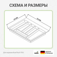 Разделители в лотке позволяют удобно организовать пространство, что делает его не только практичным, но и эстетически привлекательным. Кроме того, Hettich OrgaTray 740 изготовлен из качественных материалов, что обеспечивает долговечность и надежность.