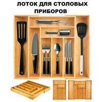 Органайзер для столовых приборов в ящик имеет от 6 до 8 отделений.