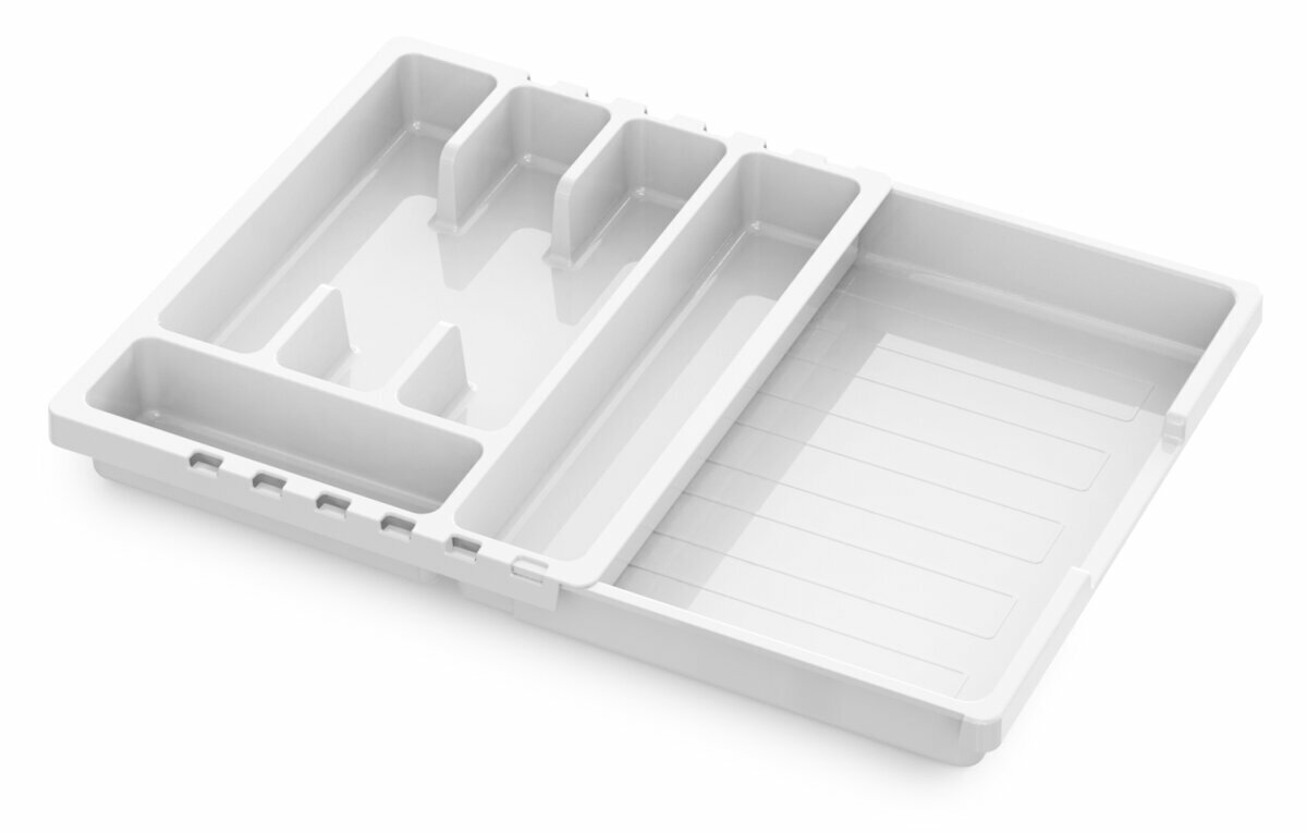 Лоток для столовых приборов раздвижной Смарт белый: сравнение цен, характеристики, фото, актуальное наличие и цены.