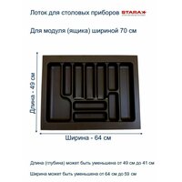 Лоток для столовых приборов Starax, 700, антрацит - кухонный аксессуар, необходимый практически в любом доме. Лоток позволяет удобно рассортировать внутри кухонного ящика ложки, вилки, ножи и другие постоянно используемые столовые приборы. Лоток специально подбирается под размеры конкретного ящика стола или кухонного гарнитура.
