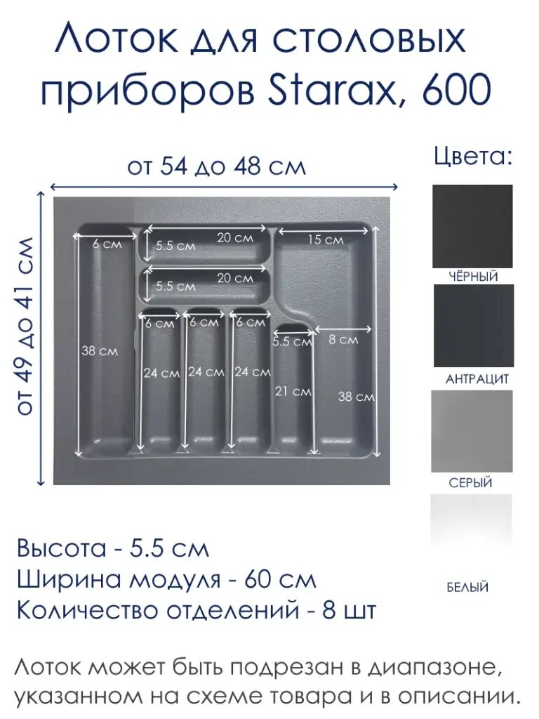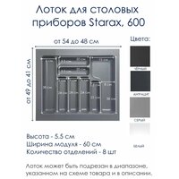 Лоток для столовых приборов Starax, в модуль 600 мм, цвет серый: сравнение цен, характеристики, фото, актуальное наличие и цены.