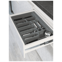 Лоток для столовых приборов Starax, в модуль 800, серый - кухонный аксессуар, необходимый практически в любом доме. Лоток позволяет удобно рассортировать внутри кухонного ящика ложки, вилки, ножи и другие постоянно используемые столовые приборы. Лоток специально подбирается под размеры конкретного ящика стола или кухонного гарнитура. При необходимости можно самостоятельно уменьшить размеры лотка, подрезав его по месту, но в пределах, установленных производителем. У данной модели: - длина (глубина лотка при установке) может быть уменьшена с 490 мм до 410 мм. - ширина 740 мм может быть уменьшена до 690 мм.