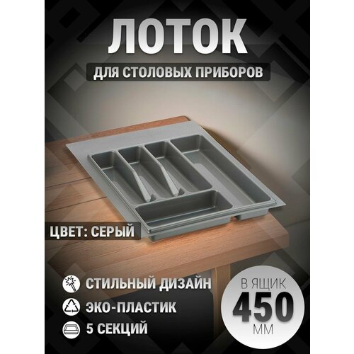 Представляем вашему вниманию лоток для столовых приборов, идеально подходящий для ящиков размером от 400 до 450 мм. Этот функциональный органайзер станет незаменимым помощником на вашей кухне, обеспечивая порядок среди столовых ложек, вилок и ножей. Изготовленный в классическом сером цвете, лоток легко впишется в любой интерьер, добавляя элегантности и удобства.